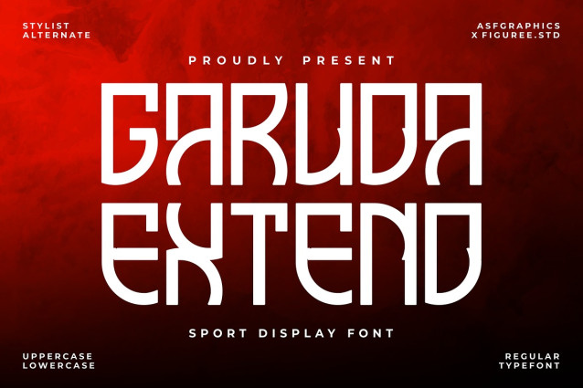 Garuda Extend Font is a dynamic sports display font built to deliver maximum impact and speed. With its wide stance, powerful letterforms, and extended proportions, this font channels energy and motion—perfect for sports branding, athlete posters, game-day graphics, and bold editorial headlines.