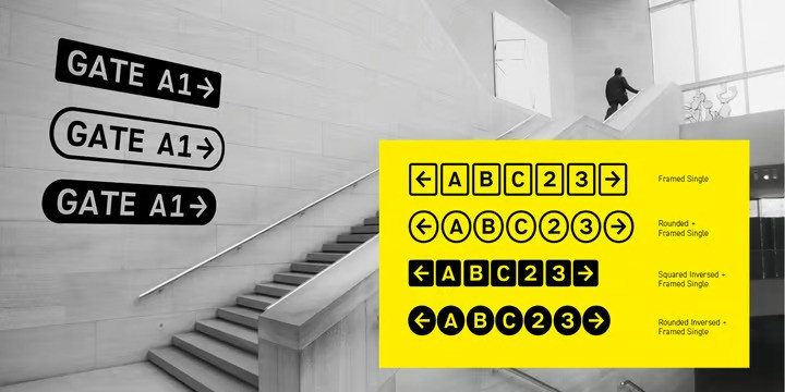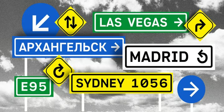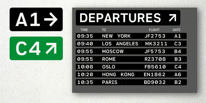 Gate A1 Font is a typeface inspired by the famous DIN, but it is more humane compared to the prototype. Thanks to its straightforward, roughly naive construction and slightly increased letter spacing, the font is quite legible, even under difficult conditions. It makes Gate A1 perfect for road signs and orientation, as well as for interfaces. The typeface supports all European languages, including Greek, and the extended Cyrillic covering all major languages of the peoples of the Russian Federation. In addition, Gate A1 has a functional set of arrows and several alternate sets of figures and graphic elements. The typeface designed by Dmitry Kirsanov was released in 2012 under the name of DIN PT and re-released in 2022 with additions by Alexander Lubovenko.