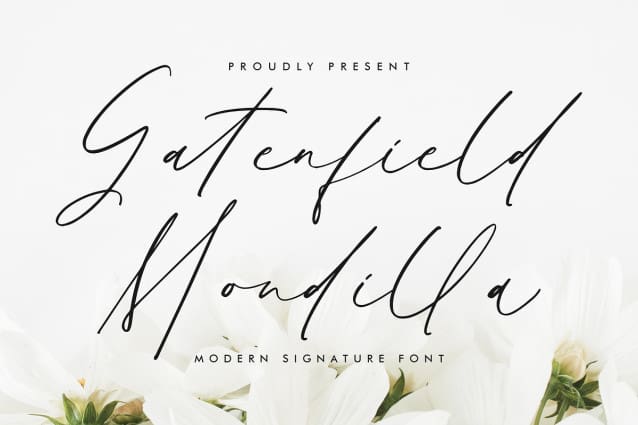 Gatenfield Mondilla Font – Modern Signature Font , created by Storytype, A luxury script that has own unique style & modern look. This typeface is perfect for an elegant & luxury logo, book or movie title design, fashion brand, magazine, clothes, lettering, quotes, and so much more.