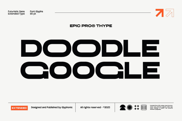 With its wide letterforms, sharp angles, and ultra-clean lines, GC EPIC PRO delivers a dynamic and forward-looking aesthetic. Whether you’re working on sci-fi visuals, esports branding, or sleek digital interfaces, this typeface offers high energy, clarity, and futuristic appeal.