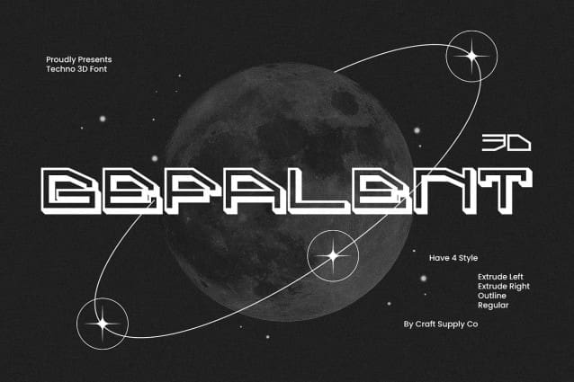 Dynamic 3D Effect for Enhanced Depth The integrated 3D effect adds an extra layer of depth and dimension to the letters, making each character pop and creating a visually dynamic appearance. The 3D styling enhances the font’s boldness, giving it a powerful presence and a sense of movement, while preserving its modern and sleek character. Gefalent 3D is designed to stand out in technology branding, game design, and other futuristic projects.