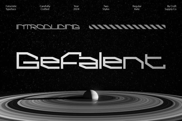 Gefalent Futuristic Font: Futuristic Geometric Display. Sleek and Geometric Gefalent presents a sleek and minimalist geometric design, characterized by monoline strokes. Its futuristic appearance draws inspiration from sci-fi and space exploration, evoking a sense of innovation and modernity.