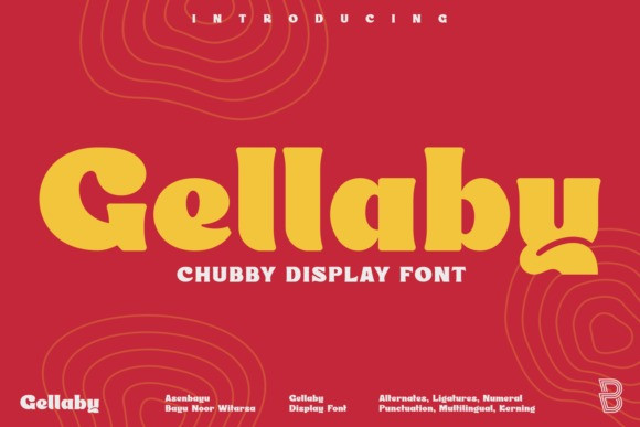 Gellaby Serif Font is a bold semi-serif display font with a unique and chubby shape. You can use this font in retro, vintage, modern and playful designs. This font is perfect for a variety of projects, such as branding, product label, poster displays, logo designs, magazines, headlines, stickers, and more.