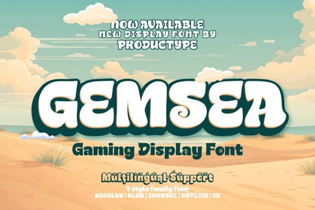 Gemsea Display is the perfect solution for projects that require a unique theme. From epic films to stunning games and unforgettable streaming events, this font offers durability and appeal in various languages. Stunning Features: Five different family styles: Regular, Blur, Engrave, Outline, and 3D. This gives you the flexibility to create a variety of nuances in your designs. It supports multilingual so that you can connect with a global audience without restrictions. Gemsea creates not just projects, but unforgettable works of art. Get the Gemsea Display Font now and bring the magic of the ocean into your designs!
