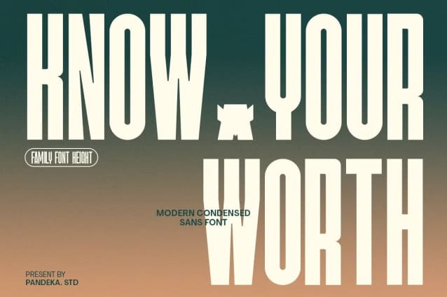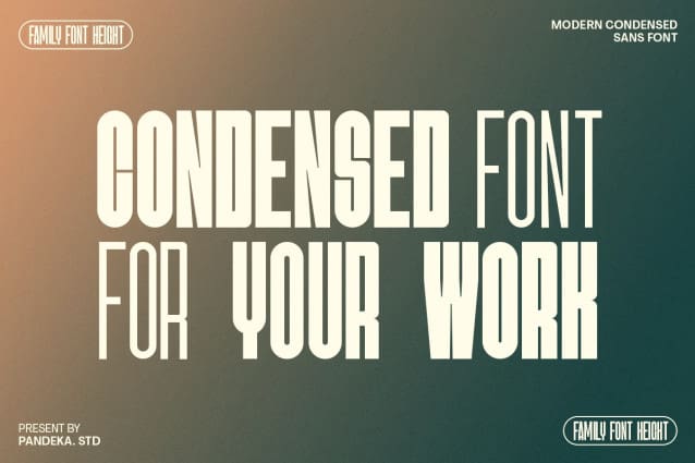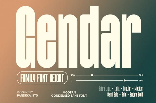 Gendar Font Family is a condensed sans-serif typeface created to be used for bold titles with distinctive shapes in a display font way to make it legible for contemporary use. Come with single-weight, legible, and expressive shapes. Its glyph catalog provides an easy-to-compose system for Latin languages with high x-height and tight line spacing.