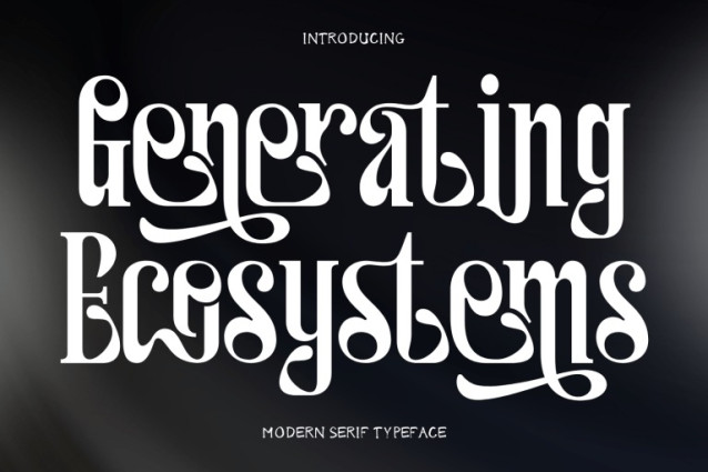 Generating Ecosystems – Modern Serif Font is a modern calligraphic serif display typeface that blends elegant editorial structure with graceful script-inspired details. Featuring refined letterforms, smooth curves, and beautifully crafted ligatures, this font delivers a sophisticated and contemporary visual presence. Its flowing swashes and balanced proportions make it perfect for boutique branding, wedding invitations, fashion editorials, beauty packaging, and modern lifestyle design projects. Generating Ecosystems is ideal for creatives seeking a serif typeface with a romantic touch and distinctive decorative elegance.