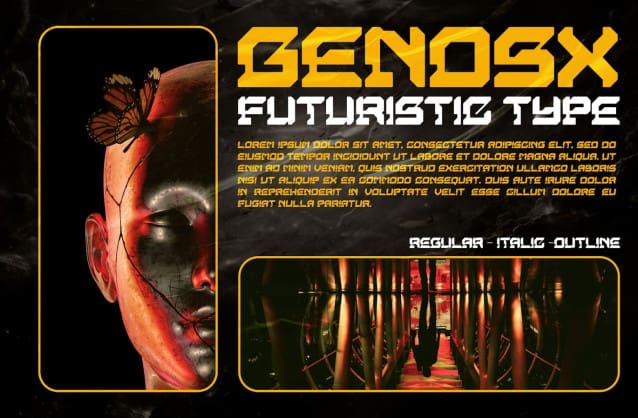 Genosx Futuristic Font, A Retro Future Font, authentic display font. The font is suitable for all branding projects like Logo, Template Design, Products and many more. It is exceptional in a wide range of contexts
