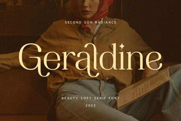 Geraldine Font is a beauty modern soft serif font with alternatives, ligatures, and multilingual support. Perfect for editorial projects, logo design, clothing branding, product packaging, magazine headers, or simply as a stylish text overlay to any background image.