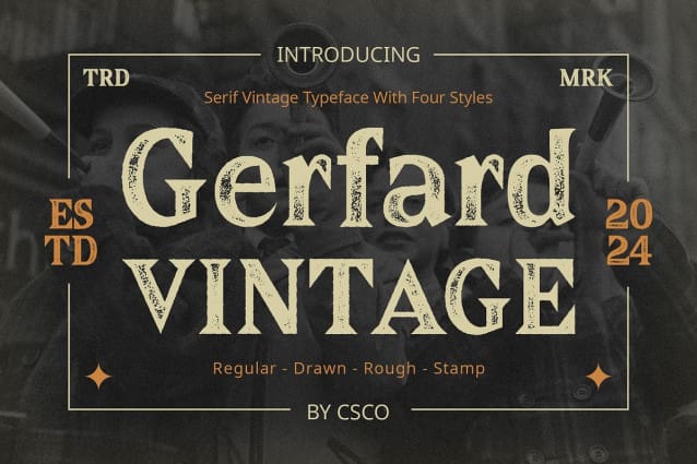 Gerfard Vintage Font: Vintage Vibes in Moderate Contrast. Serif Moderate Contrast Design Gerfard Vintage boasts a serif design with moderate contrast, striking the perfect balance between elegance and readability. Each character is meticulously crafted to convey a sense of timeless sophistication.