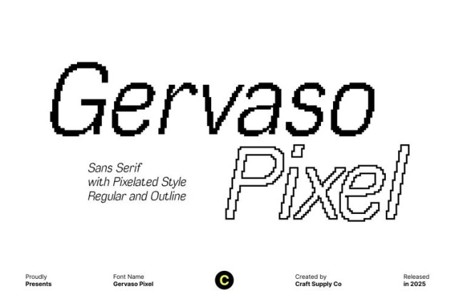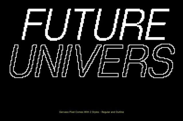 Gervaso Pixel Font This modern sans serif font features a clean, contemporary grotesk design that delivers a minimalist and stylish appearance. Its precise shapes and balanced structure create a professional tone, making it ideal for designers who value clarity, refinement, and modern visual aesthetics.