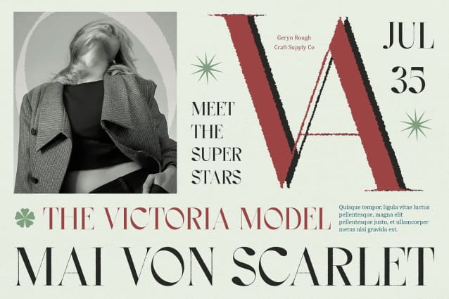 Designed for display purposes, Geryn Rough Font excels in headlines, titles, and other prominent text elements. Its rough vibe adds a touch of authenticity and originality, making it ideal for projects that require a modern yet organic look.