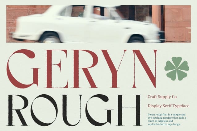 Geryn Rough Font is a modern serif font that combines elegant style with a rough, textured vibe, making it perfect for display purposes. Its unique design adds character and depth to any project, setting it apart from traditional serif fonts.