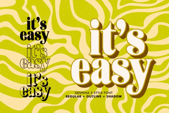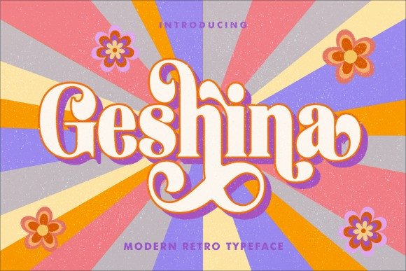 Geshina Serif Font is a retro display font featuring lots of curvy letters. Refined and cheerful, this font will be ideal for writing wedding invitations, cards, or any other design that may need a romantic, personalized touch!