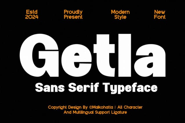 Getla Font – Sans Serif Typeface. This Font is a very flexible choice and can be used in a variety of design contexts. Its ability to provide a clean, professional, contemporary look and its simplicity and visual appeal make this font good for use in the world of graphic design and modern typography.