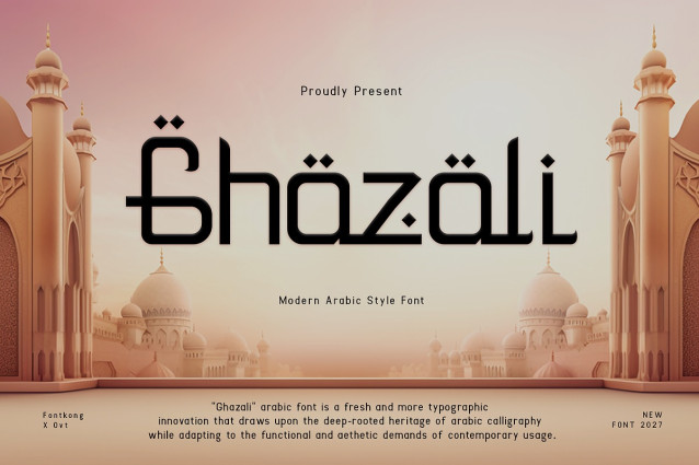 Ghazali Font is a modern Arabic-style font that blends cultural elegance with contemporary design. This versatile font is ideal for creating Islamic art, branding, logos, and eye-catching headlines. Whether for product packaging or creative typography projects, Ghazali adds a sophisticated and stylish Arabic touch to your designs.
