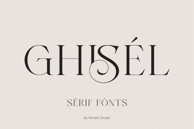 Ghisel Font – Modern Serif Font. a modern font designed with subtle curves. with many ligatures and alternative letters that will make your project look more elegant and beautiful. Great for branding projects, logos, wedding designs, social media posts, advertising, product packaging, product designs, labels, photography, watermarks, invitations, stationery and more.