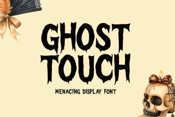 Ghost Touch Font is a distinctive haunted display typeface ideal for a wide range of creative projects. It works seamlessly for logos, stationery, apparel, web headers, flyers, posters, and more—adding a mysterious flair to every design.