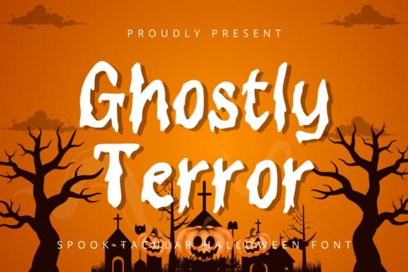 Ghostly Terror Font, a spine-chilling horror font steeped in the spirit of Halloween. Echoing the spectral beauty of melting blood, its meticulous detailing transports you to a realm of delightful dread. Unleash GhostlyTerror’s undeniable power to infuse a captivatingly creepy aura into any Halloween-themed design project.