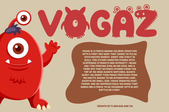 Ghoulie Display Font is a playful and quirky monster font, full of charm and cheeky personality. Each letter feels alive, bouncing with color and mischievous energy, as if little monsters are peeking out from the alphabet. With its rounded, friendly shapes and monster-inspired details, Ghoulie brings fun to every project—perfect for kids’ books, cartoons, games, party invitations, or anything that needs a touch of silly spookiness. Despite its spooky name, Ghoulie radiates joy, laughter, and creativity, making it the perfect monster buddy for designers who want to bring characters to life through typography.