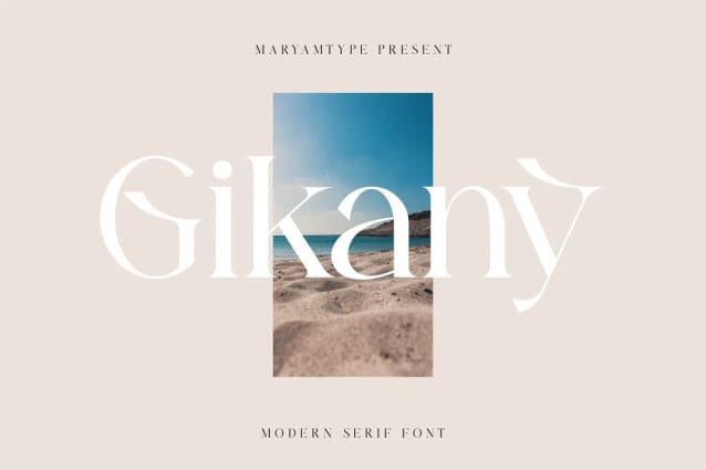 Gikany Font – Modern Serif Font, created by Maryamtype Studio, a Modern serif typeface that has a unique modern style & look. This typeface is perfect for elegant & luxurious logos, book or movie title designs, fashion brands, magazines, clothing, fonts, quotes and more.