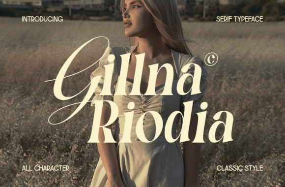 Gillna Riodia Font a sophisticated serif typeface that defines high-end style.This Gillna Riodia typeface features a stunning contrast between thick vertical strokes and delicate, hairline horizontals, complemented by graceful, sweeping swashes on its signature characters. Designed for the worlds of high fashion, luxury lifestyle, and fine art, the Gillna Riodia font brings a “classic style” that is both vintage and cutting-edge. It is the premier choice for magazine mastheads, luxury boutique logos, and elegant product packaging.
