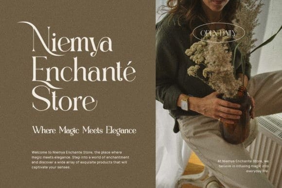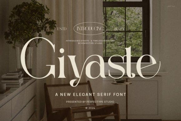 Giyaste Font – Elegant serif typeface combined with a classy and modern style. This type of font is very suitable for your various needs such as branding projects, logos, wedding designs, social media posts, advertisements, product packaging, product designs, labels, photography, watermarks, invitations, stationery, and any project, created with high level of readability.