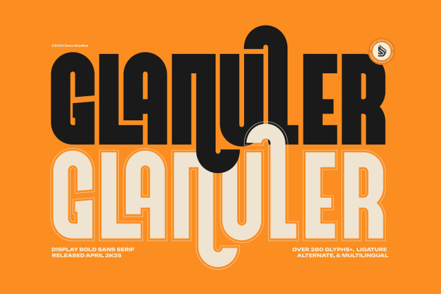 Glanuler Font | Display Bold Sans Serif, from Denustudios, suitable for any projects such as: logos, branding projects, homeware designs, product packaging, mugs, quotes, posters, shopping bags, t-shirts, book covers, name card, invitation cards, greeting cards, label, photography, watermark, special events, and all your other lovely projects that need a Display Bold Sans Serif taste.