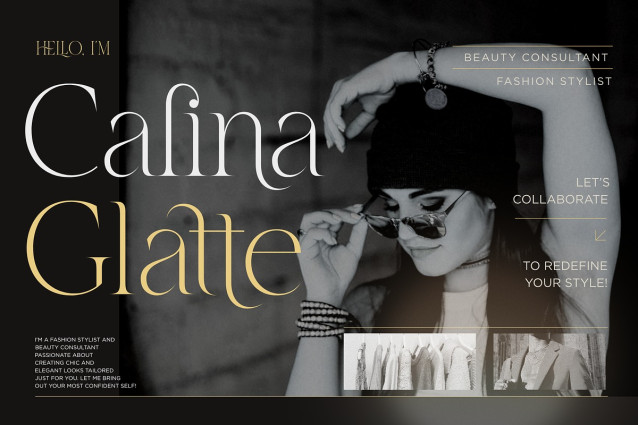 Glatte Font, a modern serif font that blends timeless elegance with contemporary flair. Crafted with precision and artistic finesse, Glatte features graceful curves, high-contrast strokes, and refined serifs that exude luxury and style.