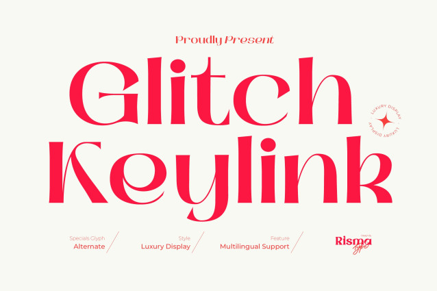 Glitch Keylink Font is a modern luxury display typeface that blends bold elegance with contemporary edge. Designed to capture attention at first glance, it features refined curves, dramatic contrast, and distinctive letterforms that create a powerful visual identity.