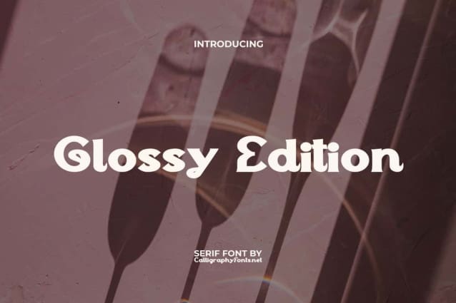 Glossy Edition Font is a retro bold serif display that combines vintage charm and modern style making this typeface very impressive for anyone who needs a strong and confident serif. Use this for banner, billboard, blog, covers, custom mug, heading, headline, labels, logos, mockup, packaging, poster, printing, quotes, signage, stickers, template, title, website, and more.