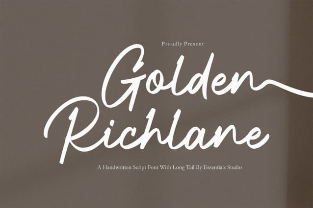 Golden Richlane Font is a stylish and elegant handwritten font. It looks stunning on wedding invitations, thank you cards, quotes, greeting cards, logos, business cards, and any other design that needs a handwritten touch.