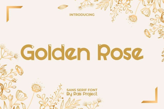 Golden Rose Font, is a stylish sans serif display font with luxurious theme. You can find a small triangular shape in the corner of each uppercase letter, as well as some lowercase letters! It will be good for any designs, such as brand image, cover, custom design, greeting card, invitation, label, poster, product packaging, quote, signage, web, and more!