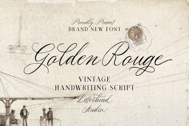 Golden Rouge Font – a typeface inspired by vintage script style. With a range of stylistic alternates, ligatures, and swashes, this font offers versatility for creating lettering with a natural, handcrafted feel.