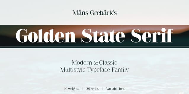 Golden State Serif is also available as a variable font, offering seamless adjustability in weight and style in hundreds of variations distilled down to a single font file. This allows for precise customization to match your design needs, providing flexibility and a wide range of typographic expressions within a single typeface.