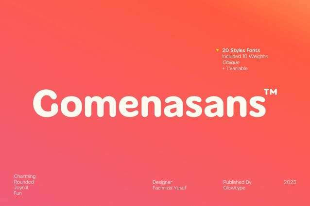 Gomenasans consisting of several types of weights, from thin to black and oblique with a total of 20 styles and variables. The perfect choice for all your branding needs.