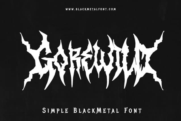 Gorewild Black Metal Font a meticulously crafted black metal font. Designed for versatility and ease of use, it is perfect for creating striking logos, band merchandise, album covers, posters, and more. This user-friendly typeface allows for easy customization, enabling you to fine-tune your text effortlessly to achieve the precise look you desire.