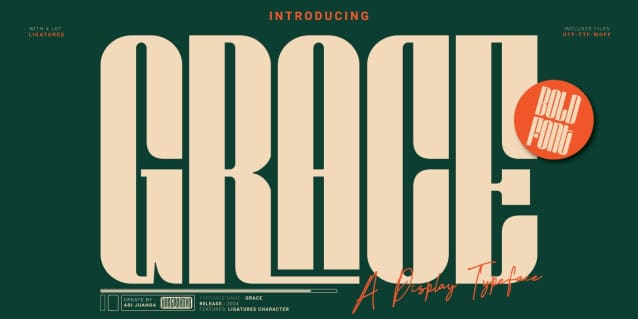 Grace Condensed Font is an elegant Bold Condensed font display with a classic touch, with lots of ligatures and also Supports Multi linguage (Latin Western Europe),Numbers and Punctuation suitable for various design applications!,