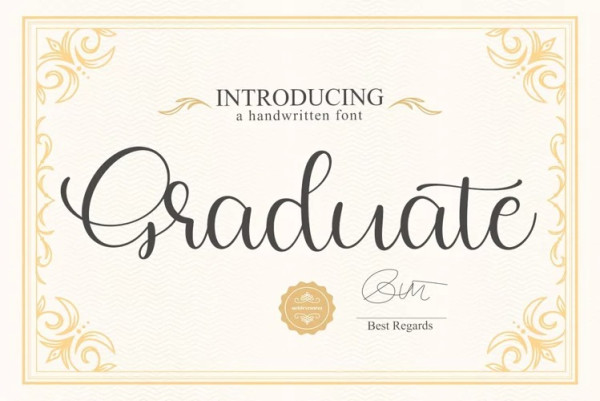 Graduate Font, our latest handwritten font, complete with a multitude of alternative characters to enhance your designs. This font boasts a charming and playful look, perfect for adding a unique touch to any project.