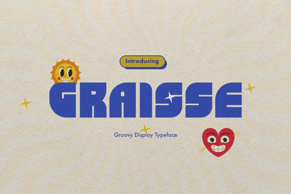 Graisse Font is a groovy font that brings retro vibes and a vibrant energy to your designs. With its bold and expressive letterforms, it is the perfect choice for eye-catching billboards, captivating advertisements, and impactful posters. The playful curves and stylish details of Graisse add a touch of nostalgia and a sense of fun to any project. Embrace the free-spirited nature of this font as it commands attention and creates a memorable visual experience. Let Graisse take your designs to new heights and make a lasting impression.