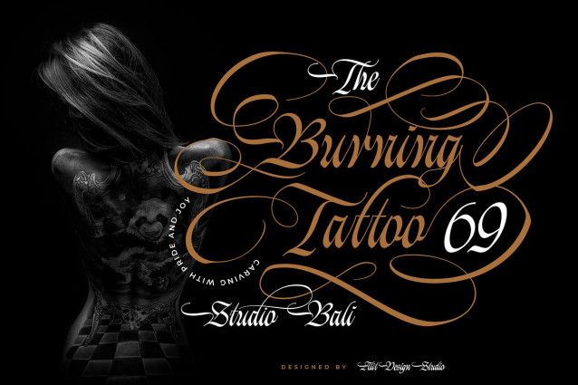 Inspired by the art of custom tattoos, streetwear culture, and premium labels, this font is designed to stand out. Each letter is a work of art in itself, featuring sharp strokes, dramatic contrast, and adorned with beautifully winding swashes that still maintain a fierce impression.