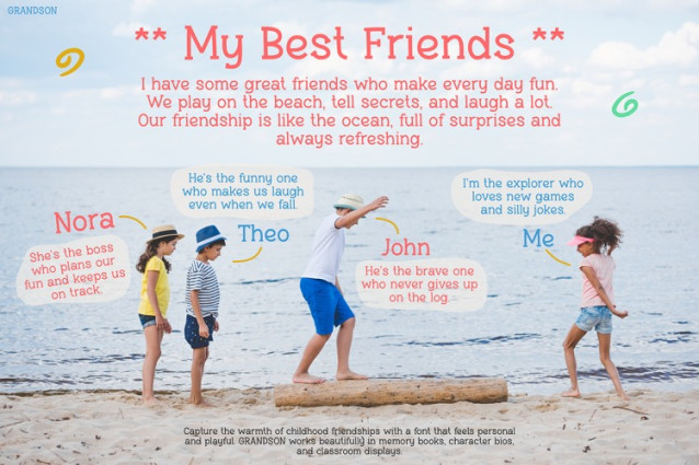 Grandson Playful Font is the perfect way to add joy and color to any kid-friendly design. This playful typeface features hand-drawn charm and vibrant character, making it a standout choice for engaging young audiences. Each letter feels like it’s been sketched with excitement, full of energy and fun. Because of this, it adds life and personality to your message. Whether you’re creating a back-to-school poster or a playful activity sheet, this font turns ordinary text into something magical.