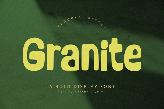 Granite Display Font is bold display font with modern and playful feels. It will be perfectly used for Branding, Logo Design, Lettering, Logotype, Clothing, Poster, magazine, packaging, posters, shopping bags, t-shirts, book covers, photography, special events and other design project.