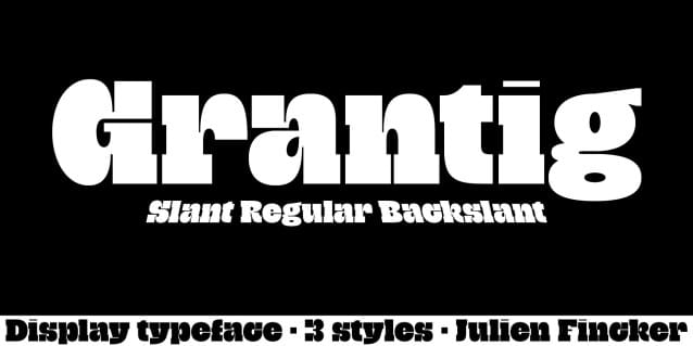 Grantig Font is the german word for grumpy. With its massive serifs and strictly rounded curves, it comes particularly close in character to the grumpy Western heroes of days gone by, always in the presence of his two leaning companions, Slant and Backslant.
