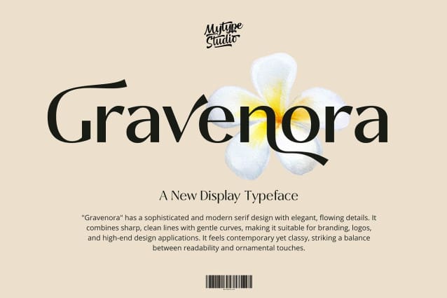 Gravenora Font, a beautifully crafted serif font that merges timeless elegance with contemporary style. Perfectly suited for branding, logos, invitations, and high-end editorial design, Gravenora brings a sense of luxury to every project.