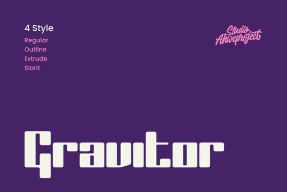 Gravitor Font is a bold, geometric typeface with a futuristic and modern feel. Its design features blocky, squared letters with clean edges and smooth curves, giving it a striking yet approachable appearance. The font comes in four styles: Regular, Outline, Extrude, and Slant, offering versatility for different design needs. Its chunky and distinctive shape makes it ideal for titles, posters, logos, or other large-format text where strong visual impact is required. With its retro-tech aesthetic, “Gravitor Font” adds a bold and confident character to any design project.