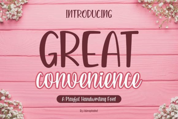 Great Convenience Font is a playful and friendly handwriting font. It looks fun, jolly and cute. This font can be used for invitations, business cards, greeting cards, quotes, fashion, photography, and so much more.