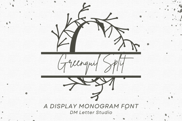 This font is used only for demos (Demo license). If you want to use this font for commercial use please contact: https://dmletterstudio.com/product/greenquill-split-monogram/