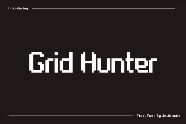 Grid Hunter Font is a bold pixel-style typeface inspired by retro arcade visuals and modern digital grids. Built with sharp edges and precise square geometry, this font captures the spirit of classic 8-bit and 16-bit games while maintaining a clean, structured look.