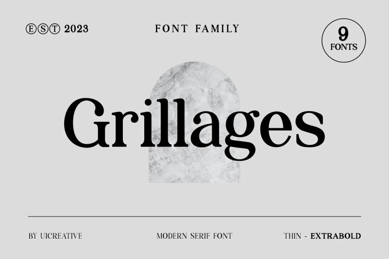 Grillages Font – Modern Serif Font. Modern Serif font that feels beautiful classy, elegant, and modern. This font is ideally suited for a wide variety of projects, such as signature, stationery, logo, wedding, typography quotes, magazine or book covers, website headers, clothing, branding, packaging design, and more. Also, fashion-related branding or editorial design displays both masculine and feminine qualities.