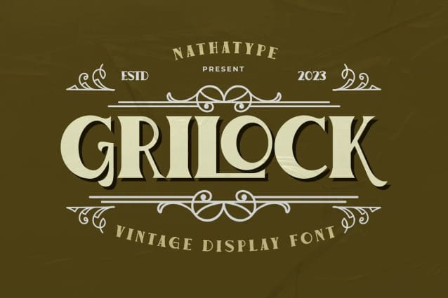 The relatively sharp corners of Grilock add a touch of edginess to the font, creating a sense of boldness and impact. These sharp angles provide visual contrast against the uneven thickness, resulting in a font that is both striking and memorable. In addition, Grilock gives ornaments as a special bonus.